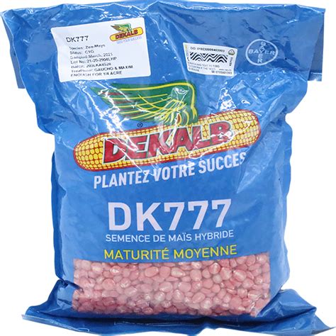 dk777 maize seed High yield and large grain size. ... 6. Resistant to root and stalk lodging. 7. DK 777 can yield between 40 - 44 bags of maize per acre. Other packaging.