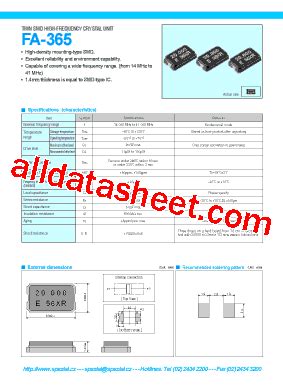 Part #: FA365. Download. File Size: 25Kbytes. Page: 1 Pages. Description: THIN SMD HIGH-FREQUENCY CRYSTAL UNIT. Manufacturer: List of Unclassifed ...