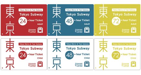 Tokyo Subway Ticket · Price. Tokyo Subway 24-hour Ticket – Adult: 800 yen, Child: 400 yen. Tokyo Subway 48-hour Ticket – Adult: 1,200 yen, Child: 600 yen. Tokyo ...